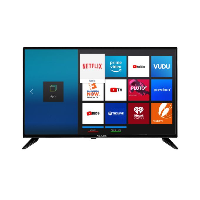 The Nexus 43-inch Smart TV features a 1920×1080 Full HD resolution and runs on Android 9.0. Key specs include 2 HDMI ports, 2 USB ports, Wi-Fi, and pre-installed apps like Netflix and YouTube. It also offers video enhancements like HDR and 4K AI Upscaling, along with Dolby Digital Audiocommon apps like Netflix and YouTube, plus wireless connectivity for screen mirroring with Frameless slim design, Dolby Digital stereo sound, Wi-Fi, and screen sharing capabilities, Includes HDR and 4K AI Upscaling for improved picture quality